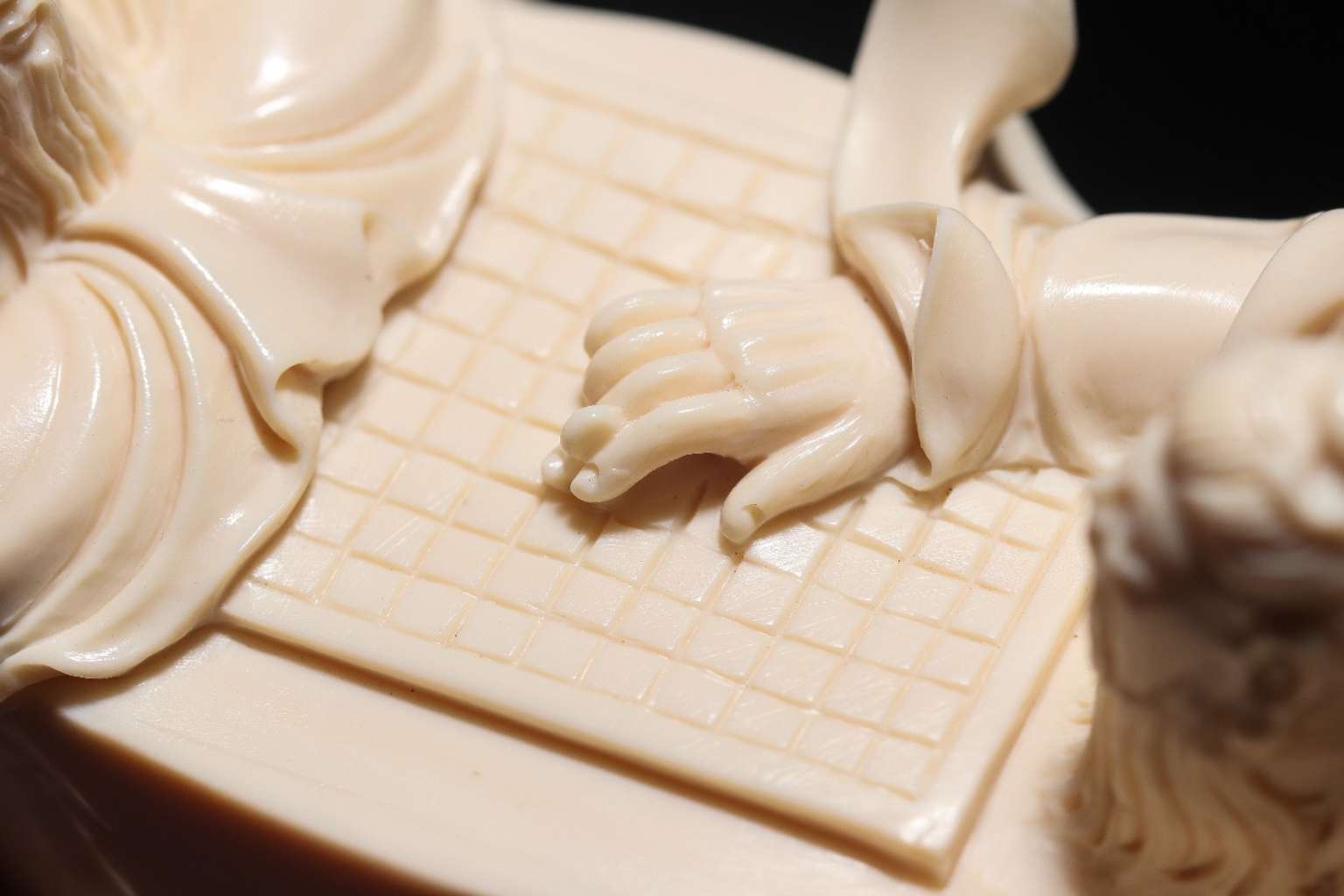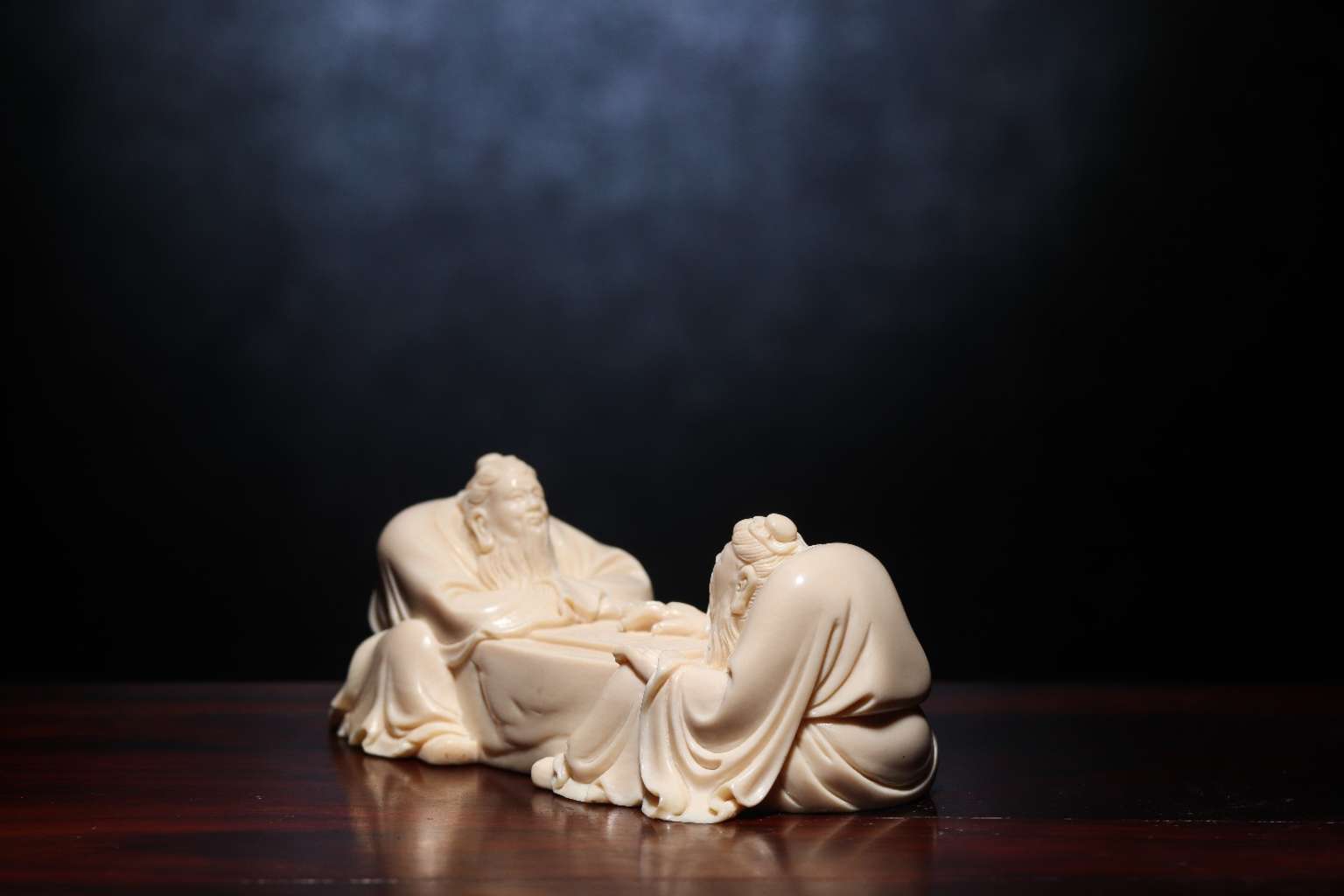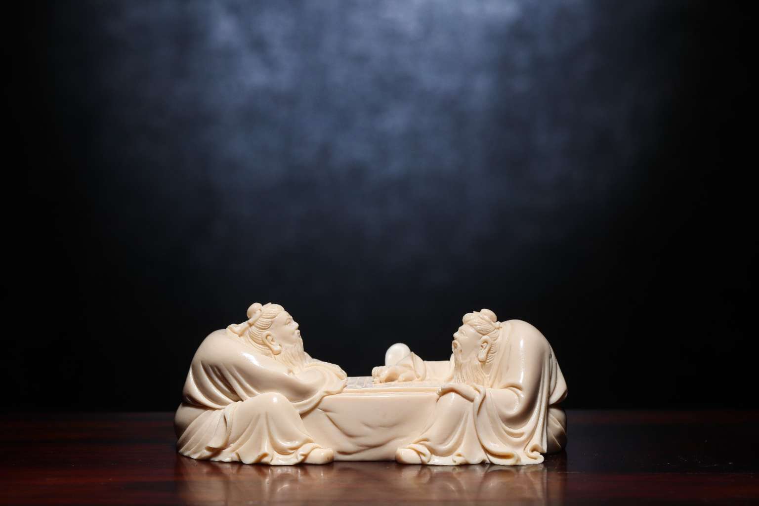 【猛犸牙雕】《棋逢對手》底座純手工制作 可品倒流香 即是對手 又為知己 寓意友誼長存