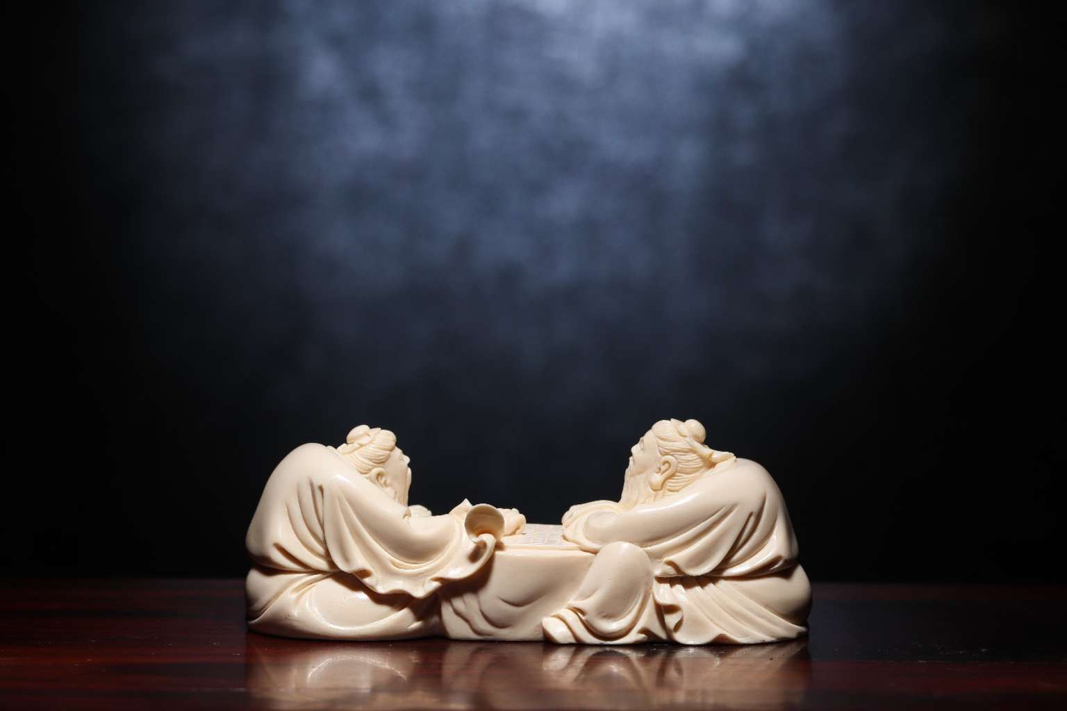 原創(chuàng)孤品!【猛犸牙雕】《棋逢對手》底座純手工制作,可品倒流香!即是對手、又為知己。寓意友誼長存!意境深遠!牙料水潤細膩,原創(chuàng)手雕,這是一件題材新穎、牙木結合、非常難得的原創(chuàng)佳作!